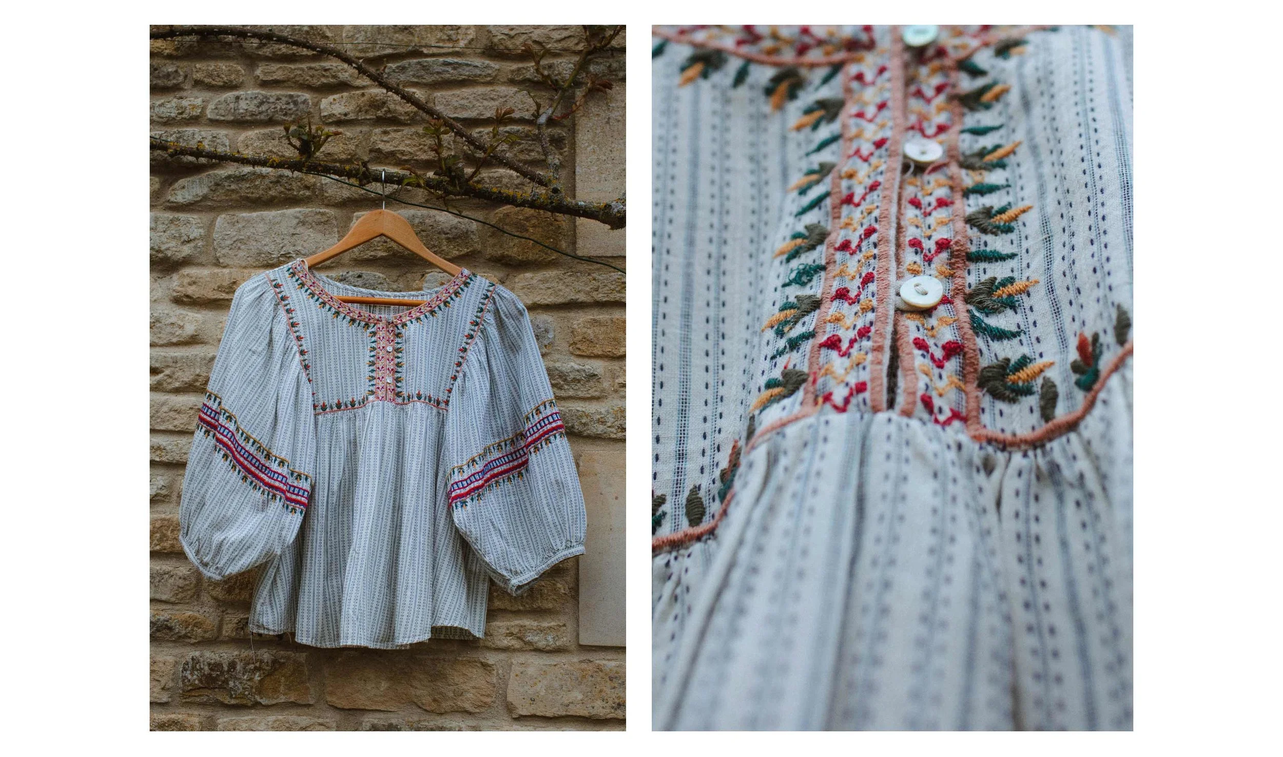 Here we have layered this white shirt with this smock top in a pale blue and white stripe. Of course both items could easily be worn separately but I like the effect of the two together - to me it looks more contemporary and the colours of the two pieces are so complimentary. We have paired these two tops with high waisted, pleat fronted trousers from Toast. The olive green, pale blue and white are such a lovely colour combination. The boxy shape of the tops coupled with the wide-leg, cropped trousers is a silhouette that I always love. It's such a perfect style across all ages - effortlessly cool.