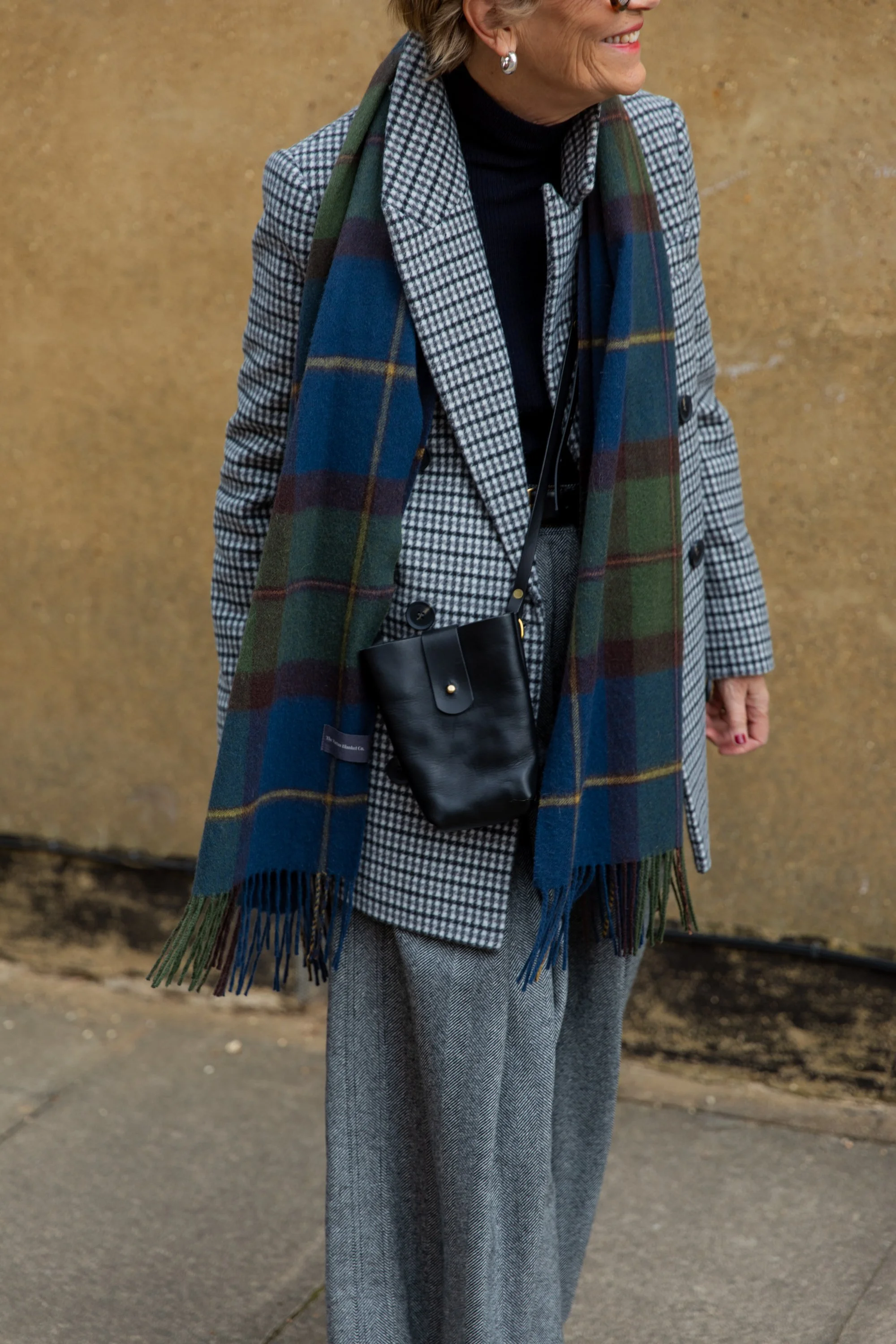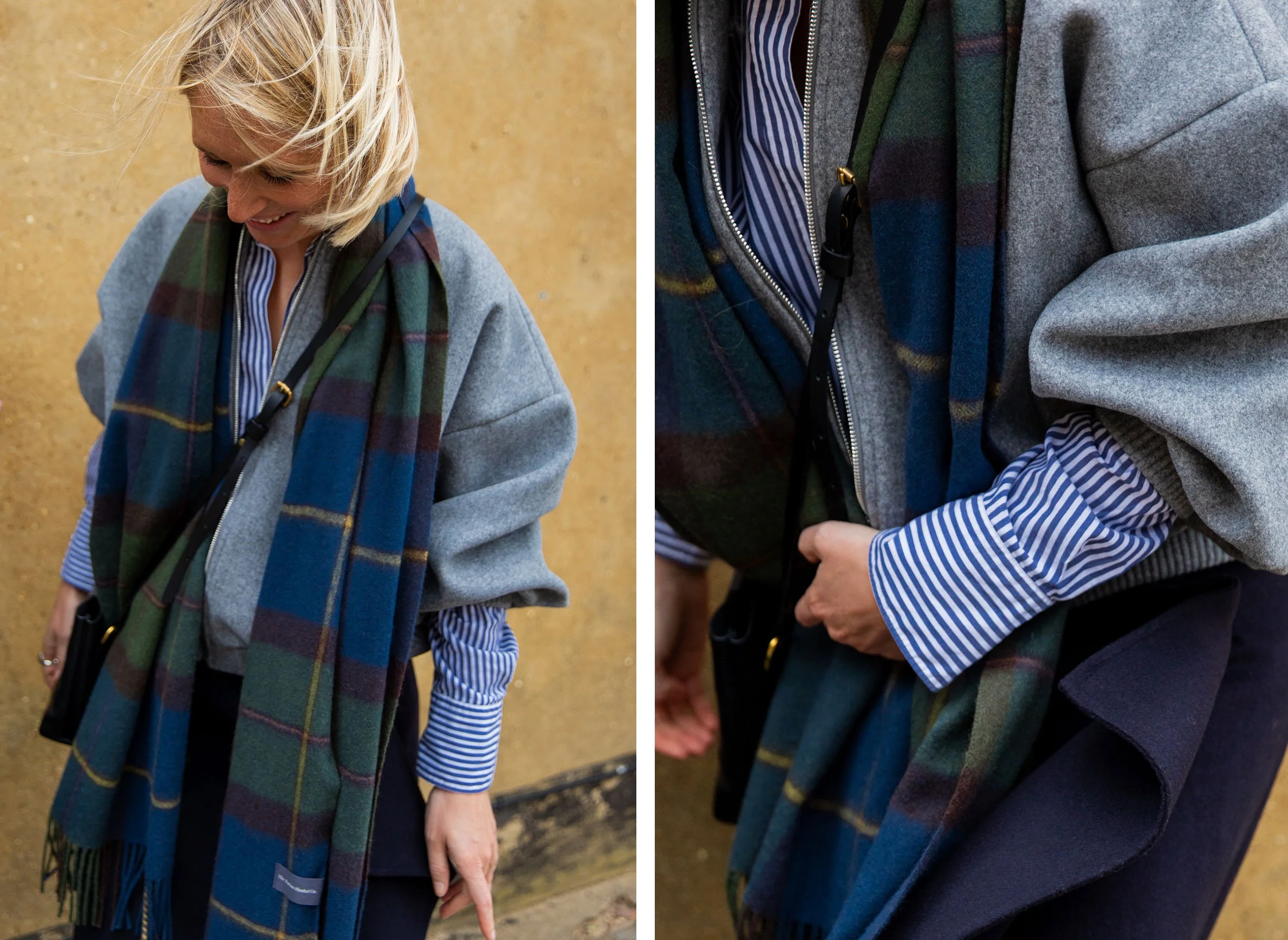 It has been brought to my attention that we wear a lot of blue! For those of you who don’t enjoy wearing blue you could always swap in mum’s navy poloneck jumper and cardigan for a punchier colour like red, burgundy or green. A scarf is a great way of tying in the colours of your outfit. The one that mum is wearing is by TBCo (it is the MacLeod tartan - of course!) but the brand have a myriad of choices on their site.