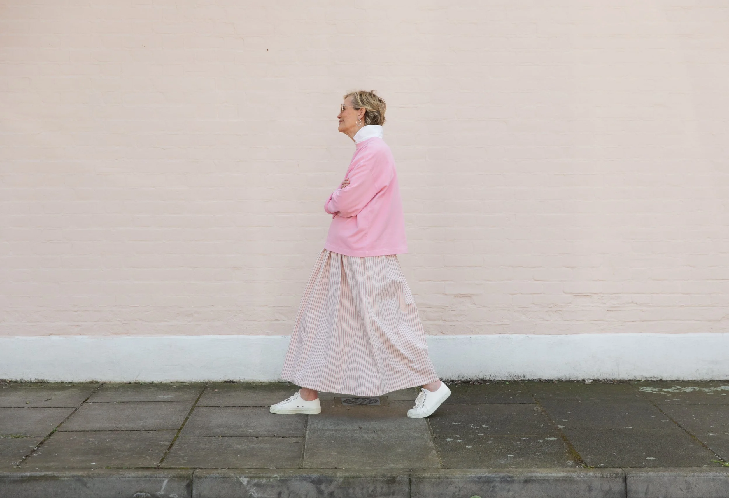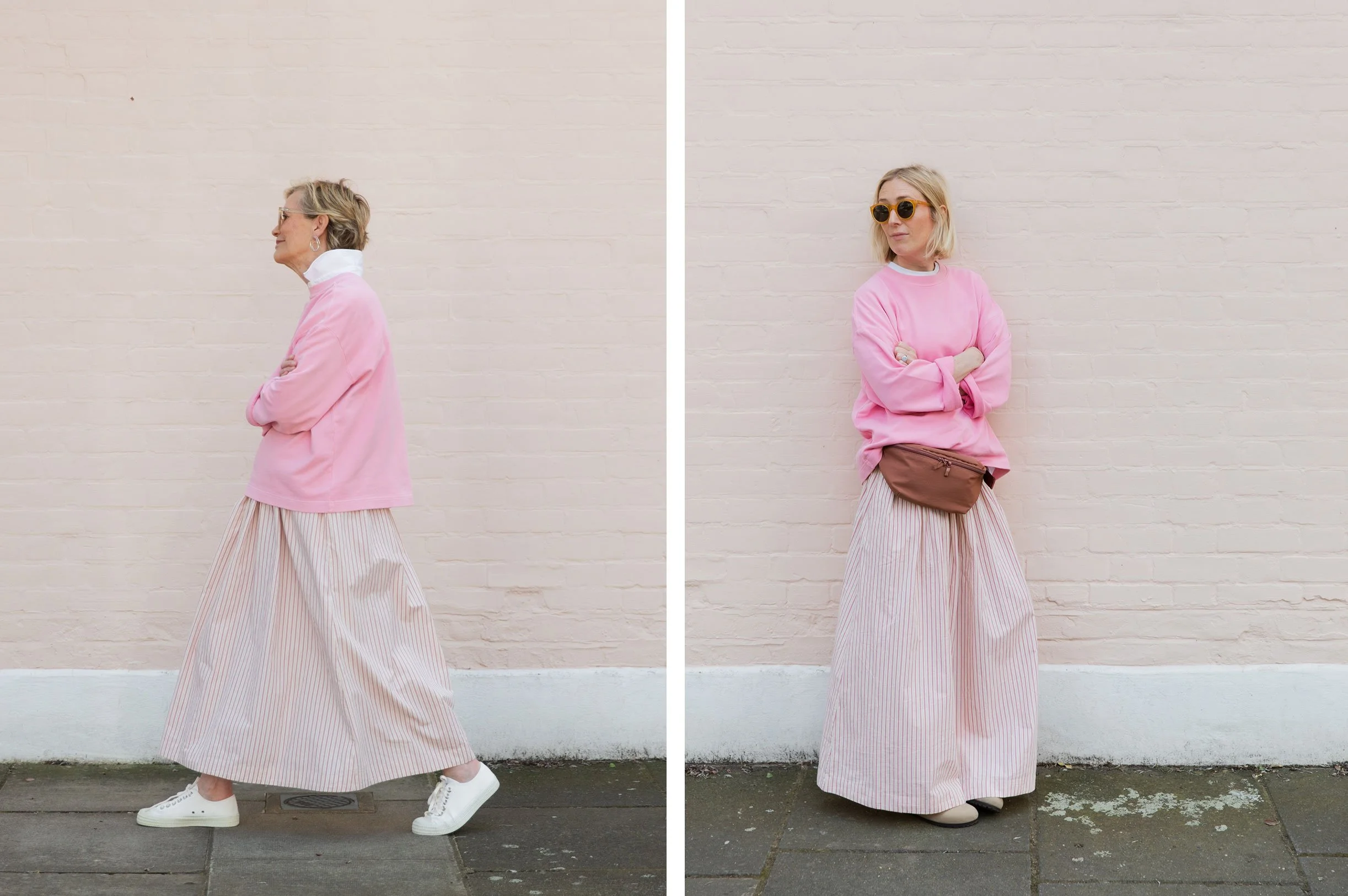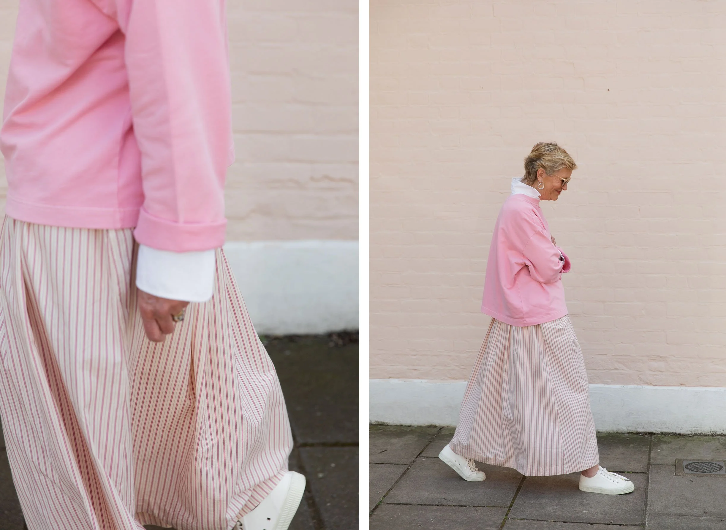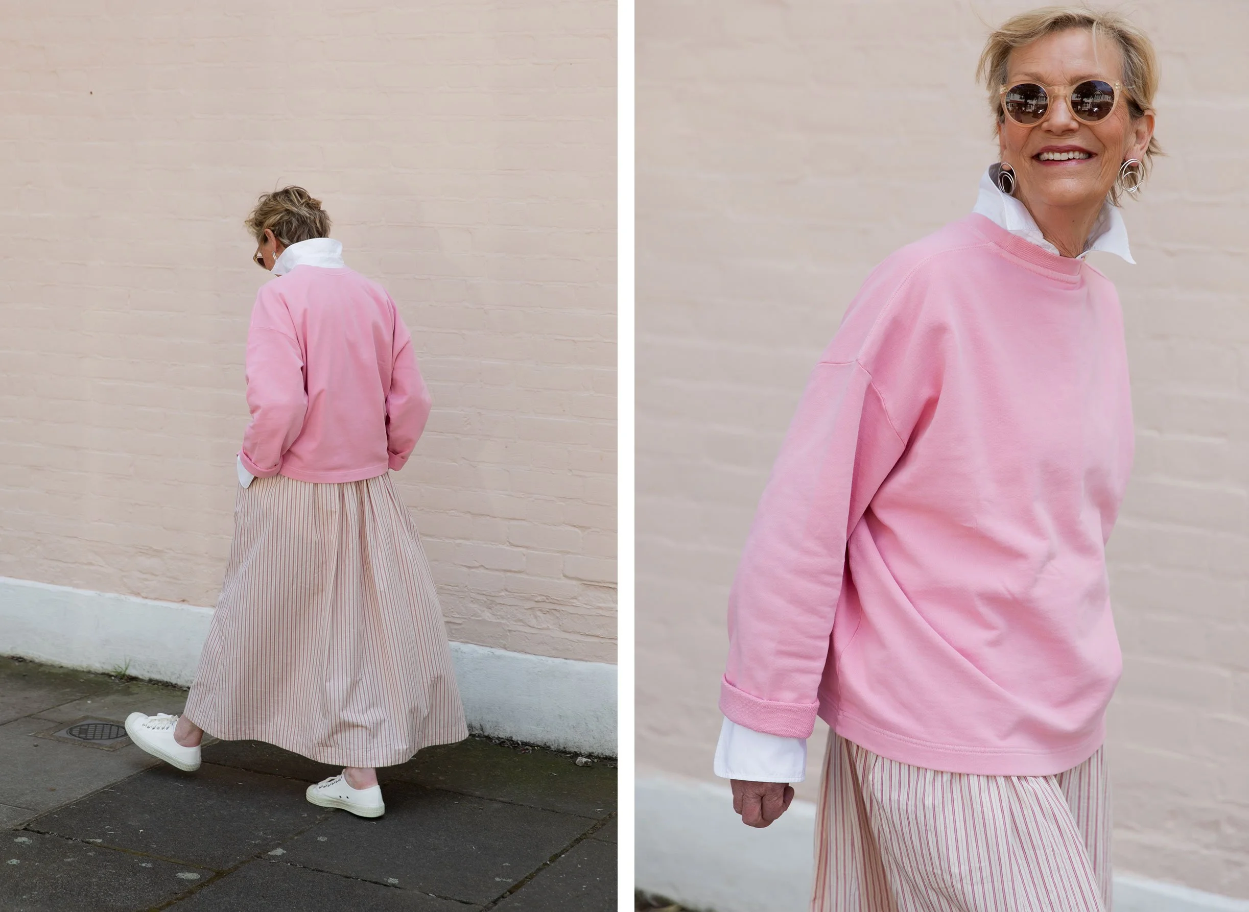 If I said that last week’s outfit was very ‘mum’ circa early 90’s, this outfit really is mum! Probably a little bit earlier than that, maybe late 80s? Here we are again wearing over-sized sweatshirts and long cotton skirts. We have the style legacy of Lady Di to thank for that! I, for one, am very pleased as not only do I love this look but it is extremely comfortable and if you have learnt anything from this blog by now, it is that comfort is key to a successful outfit!
