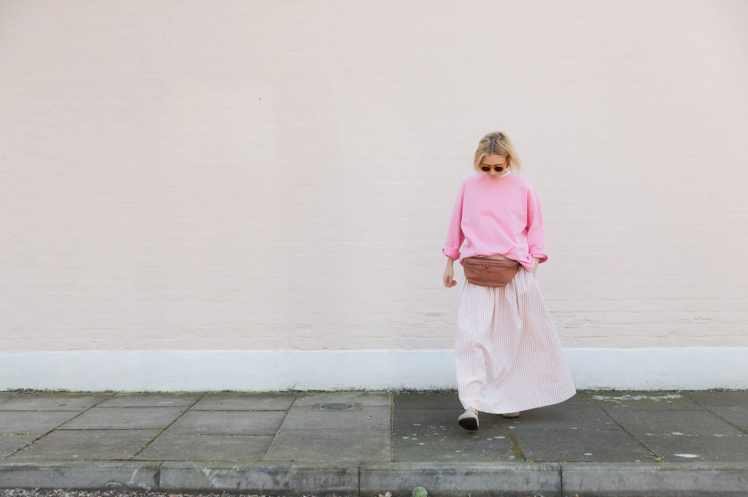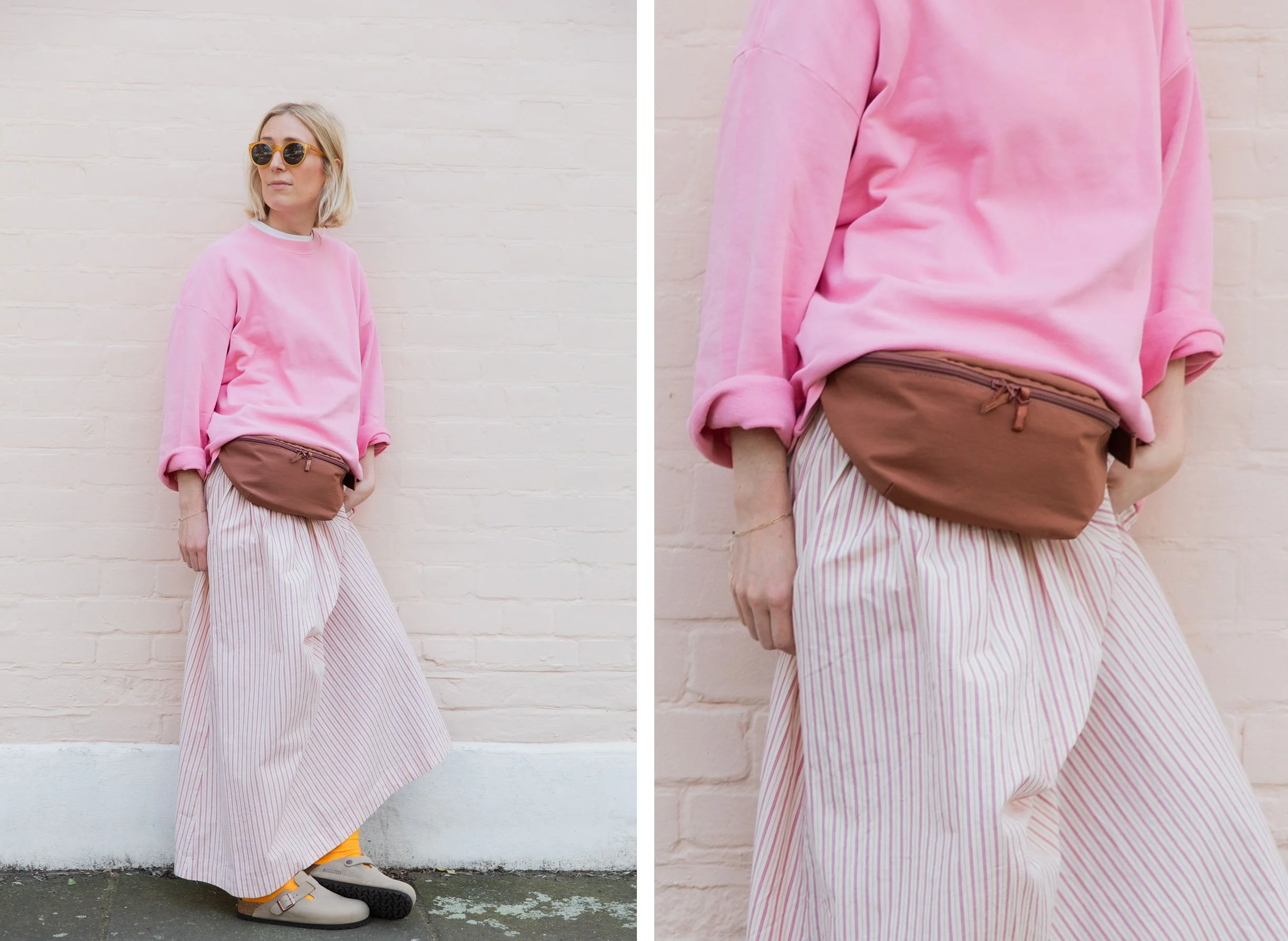 In terms of what else you could wear this skirt with, obviously a white shirt on its own or a white/cream T-shirt would work well. A much darker pink would also look great, as would a soft brown (like the colour of my bumbag). Dark green often goes extremely well with pink too. Another option would be denim - a denim shirt or a t-shirt and denim jacket would look very cool.