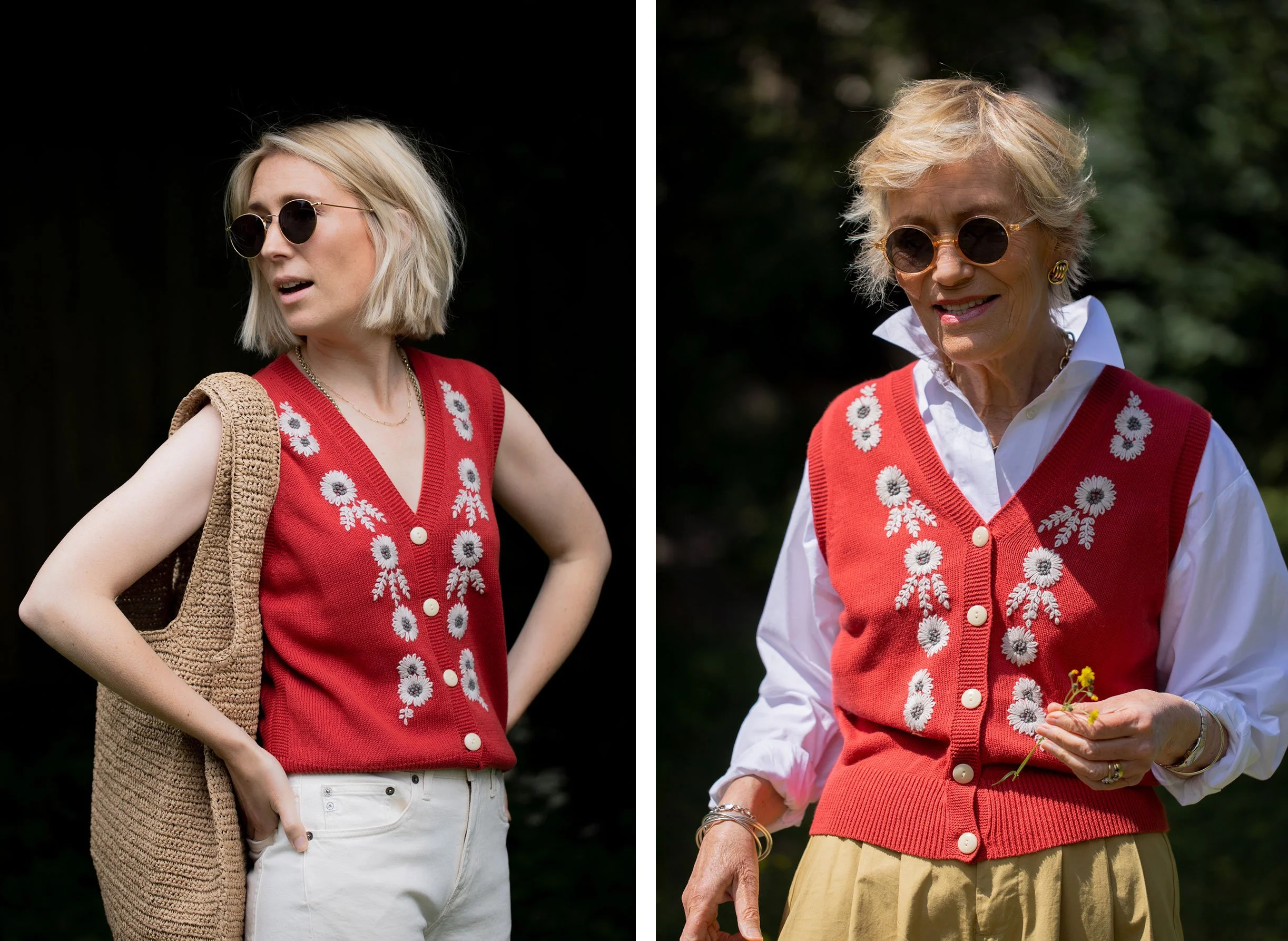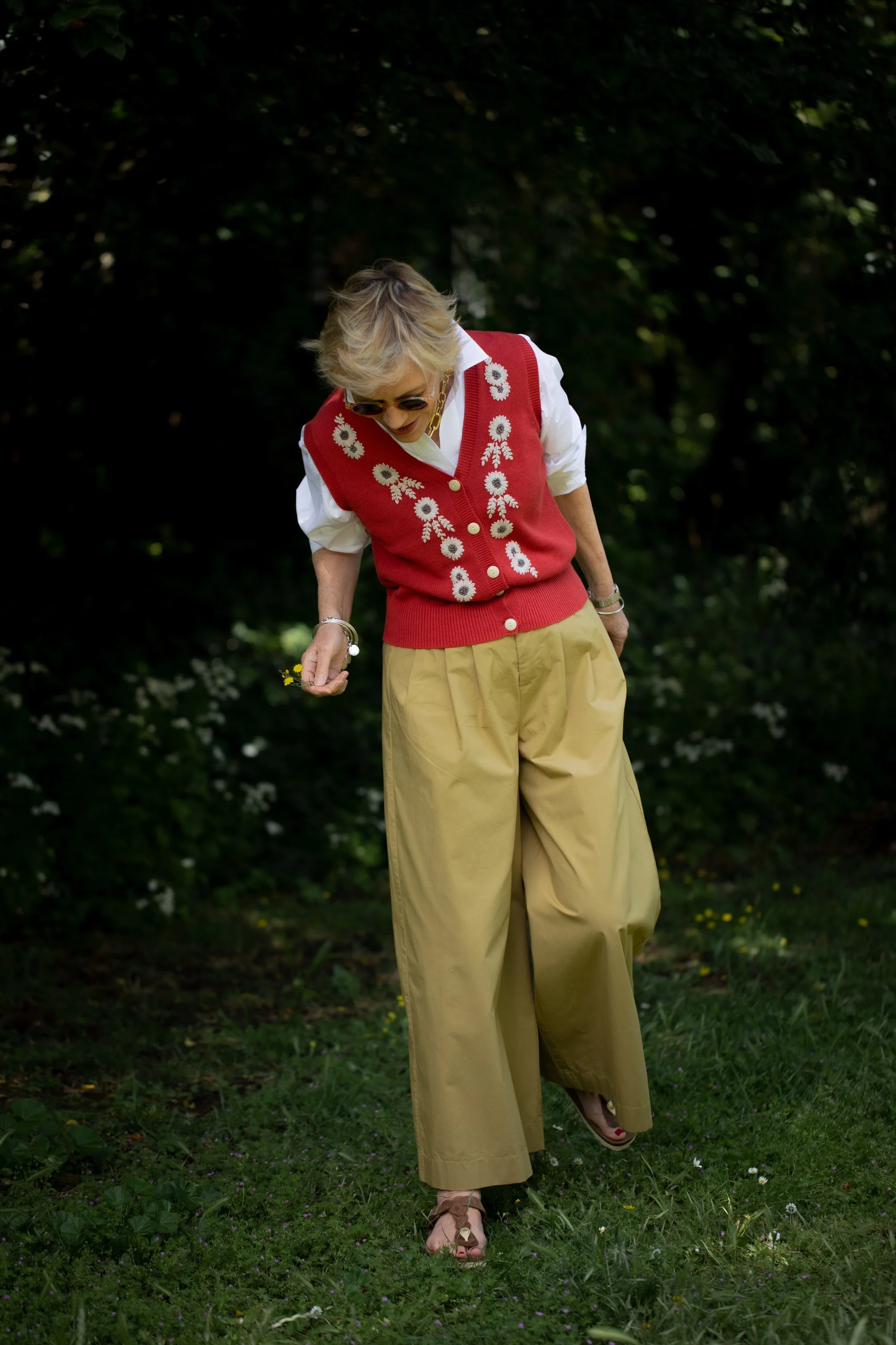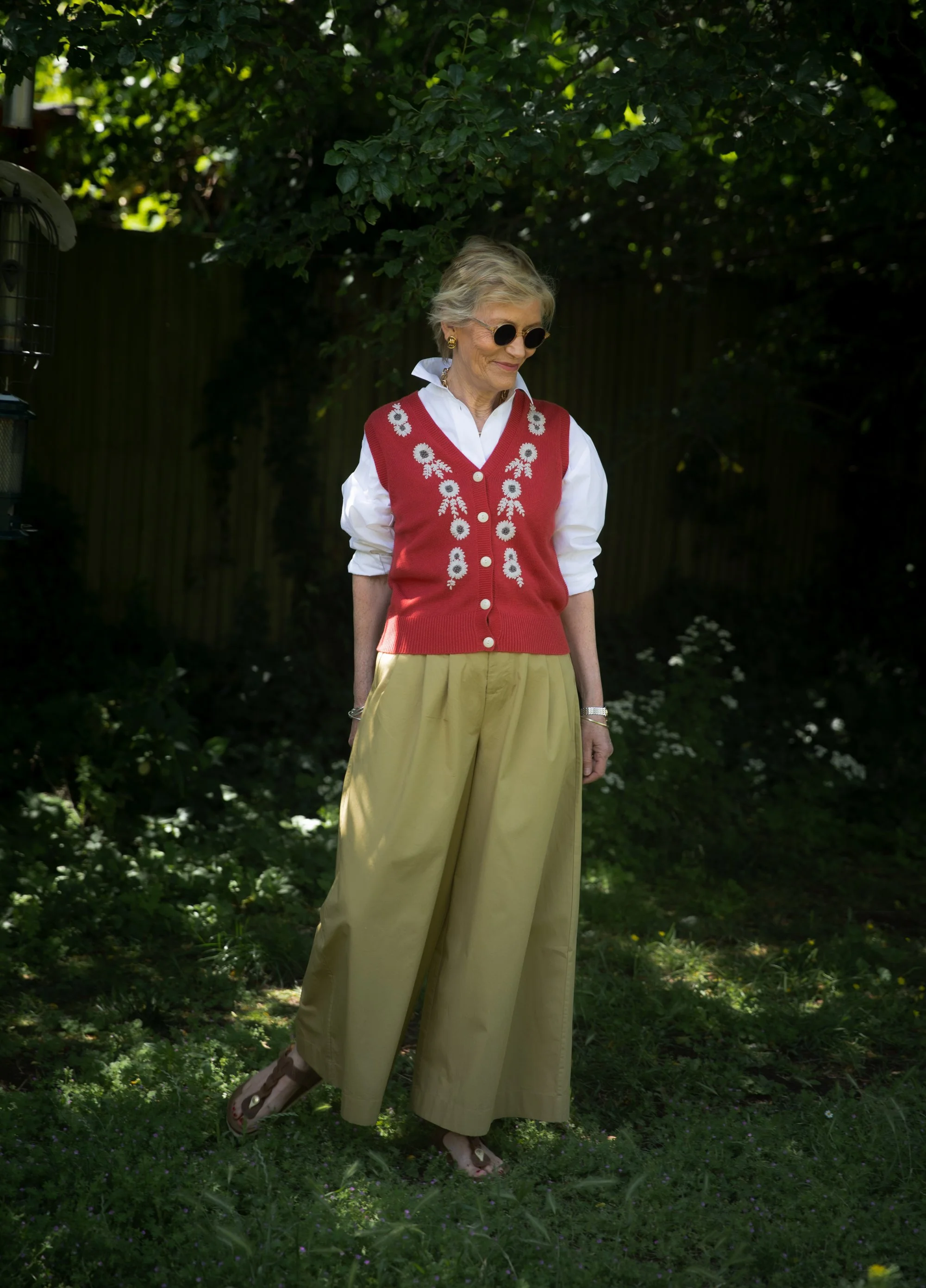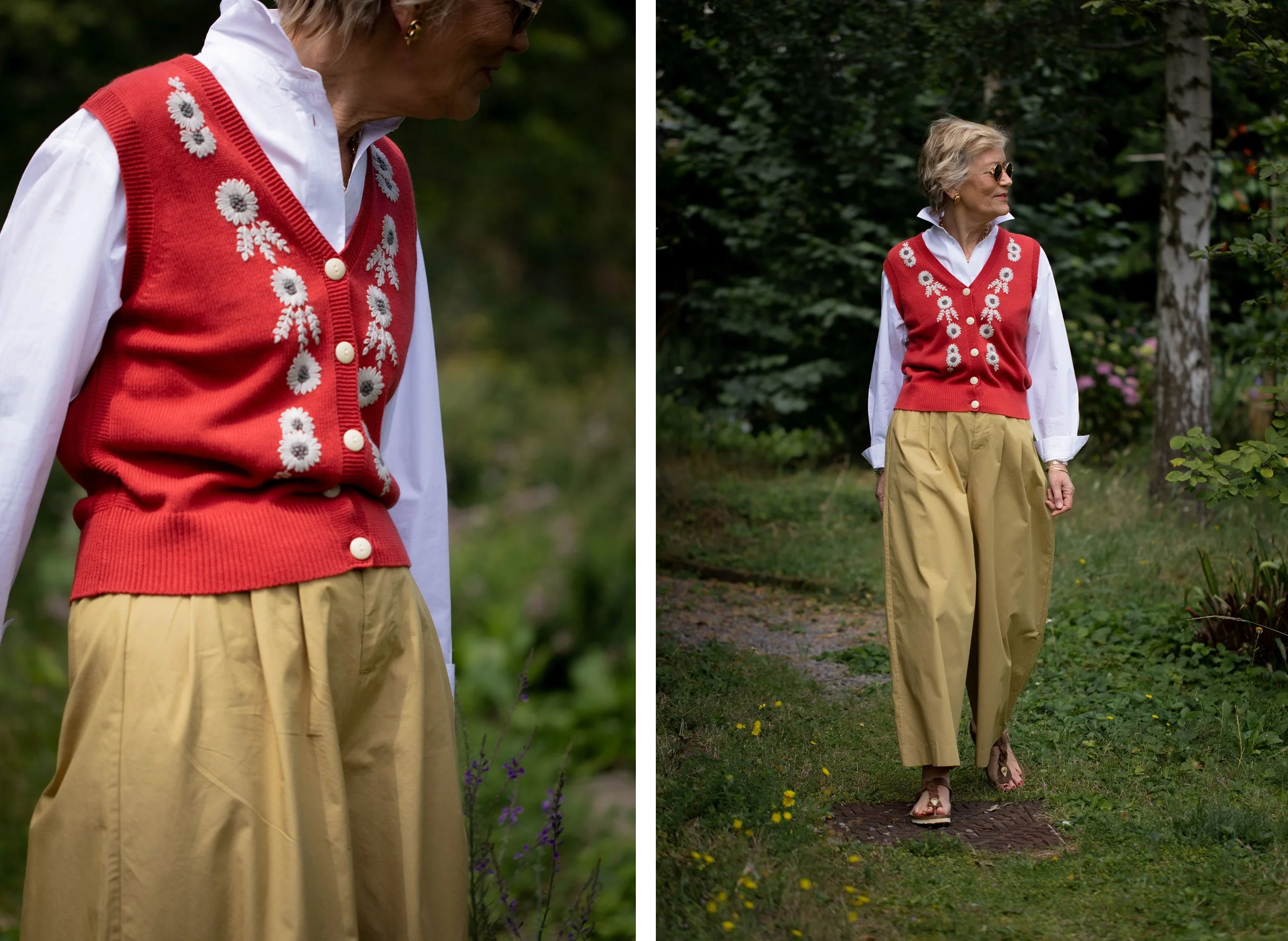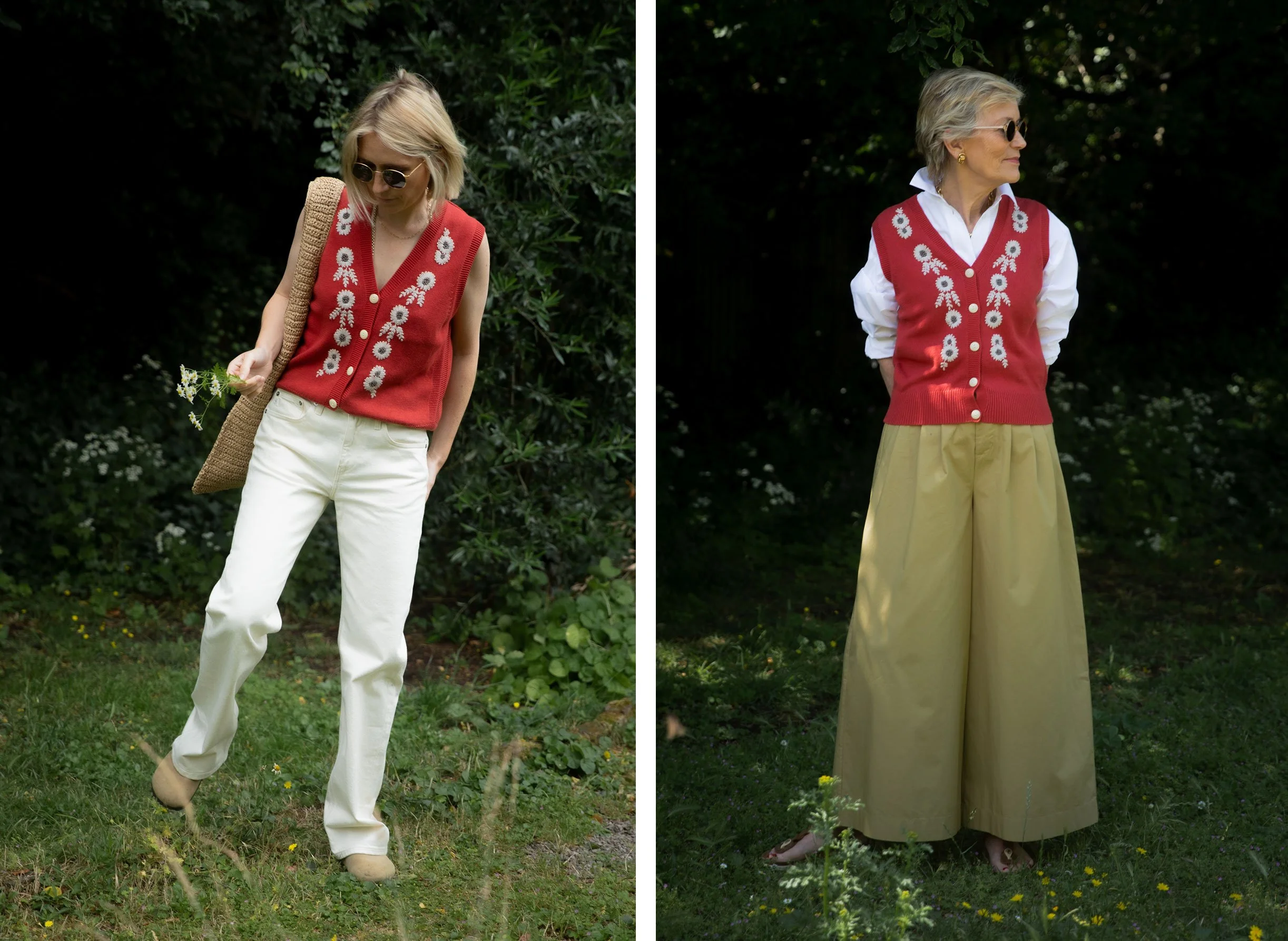 Full length jeans are back in. It’s actually quite nice to have my ankles covered after a decade of not! This pair are by MUD Jeans. They are another special brand trying to do things differently and better. The average pair of jeans uses 7000 litres of water to make. MUD denim use 393 litres. Each pair contains up to 40% post consumer recycled denim. MUD also made this skirt that mum wore a few posts ago. The knitted vest would look gorgeous with it.