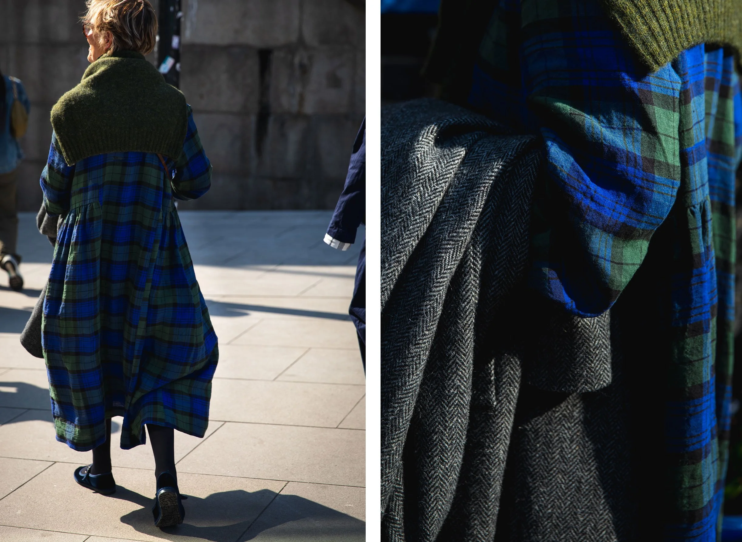 For a dress and long coat to look really elegant, you want them be the same length. A little longer than the dress/skirt is fine but much shorter is going to look a bit mis-matched. If you’re struggling to find the perfect long coat then you may want to go short instead, something that comes to the waist like a peacoat. This works particularly well if your dress is a-line and the coat is too (or double breasted).