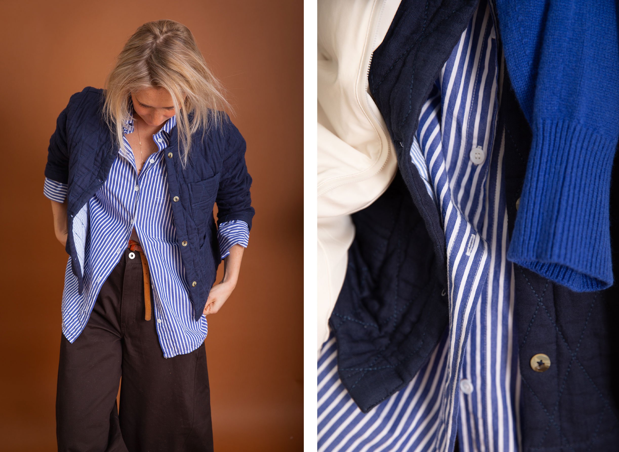 And finally, before I have another Lemsip, a shout out to Bonté - the brand behind my sweet navy blue quilted jacket. This small brand always have colour and prints at the forefront of their collections, using interesting design details to stand them apart from other labels. The diamond shaped quilting on my jacket and the scalloped hem, cuff and collar is a case in point but do check out some of their prints for summer which are vibrant and joyful!