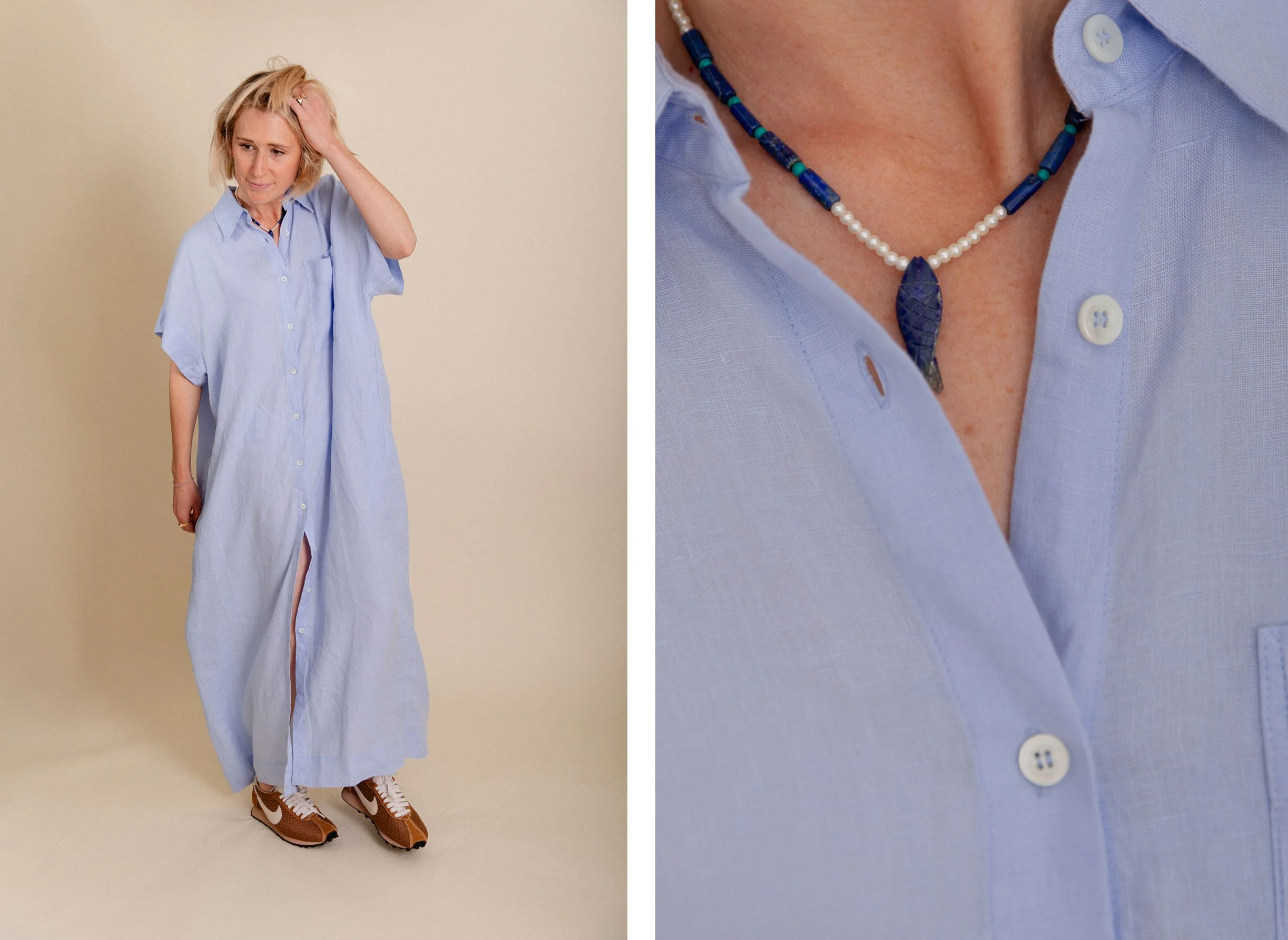 There are a myriad of lovely shirt dresses out there from this one by MariMekko, to this one by Soeur, or this by COS or this dress by Gant. We always wear ours loose but if you like a bit more structure (it can look smarter too) then wearing a belt works really well.