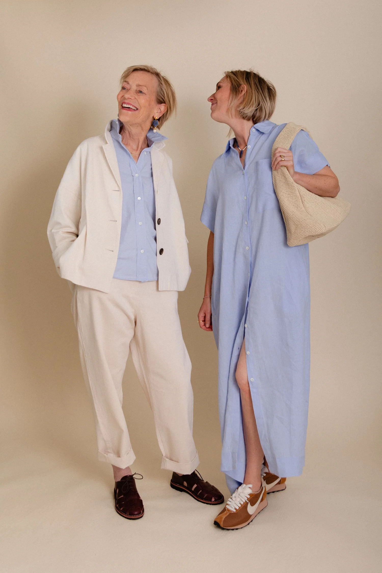 A shirt dress, as I am wearing here, is a staple for both mum and me in the summer. They’re throw-on-and-go pieces that keep you cool but not feeling too exposed on hotter days. No bronzed limbs required - phew!