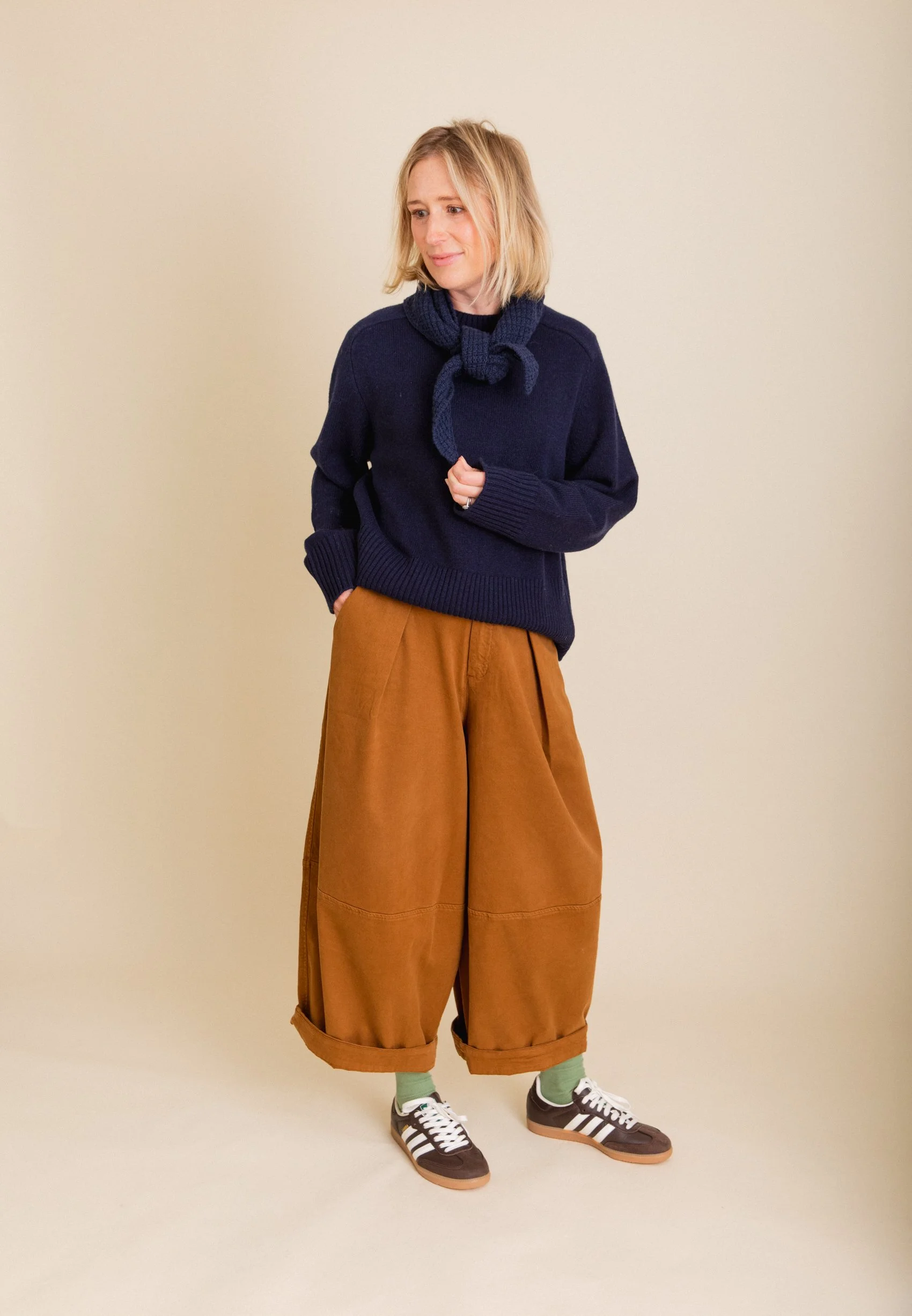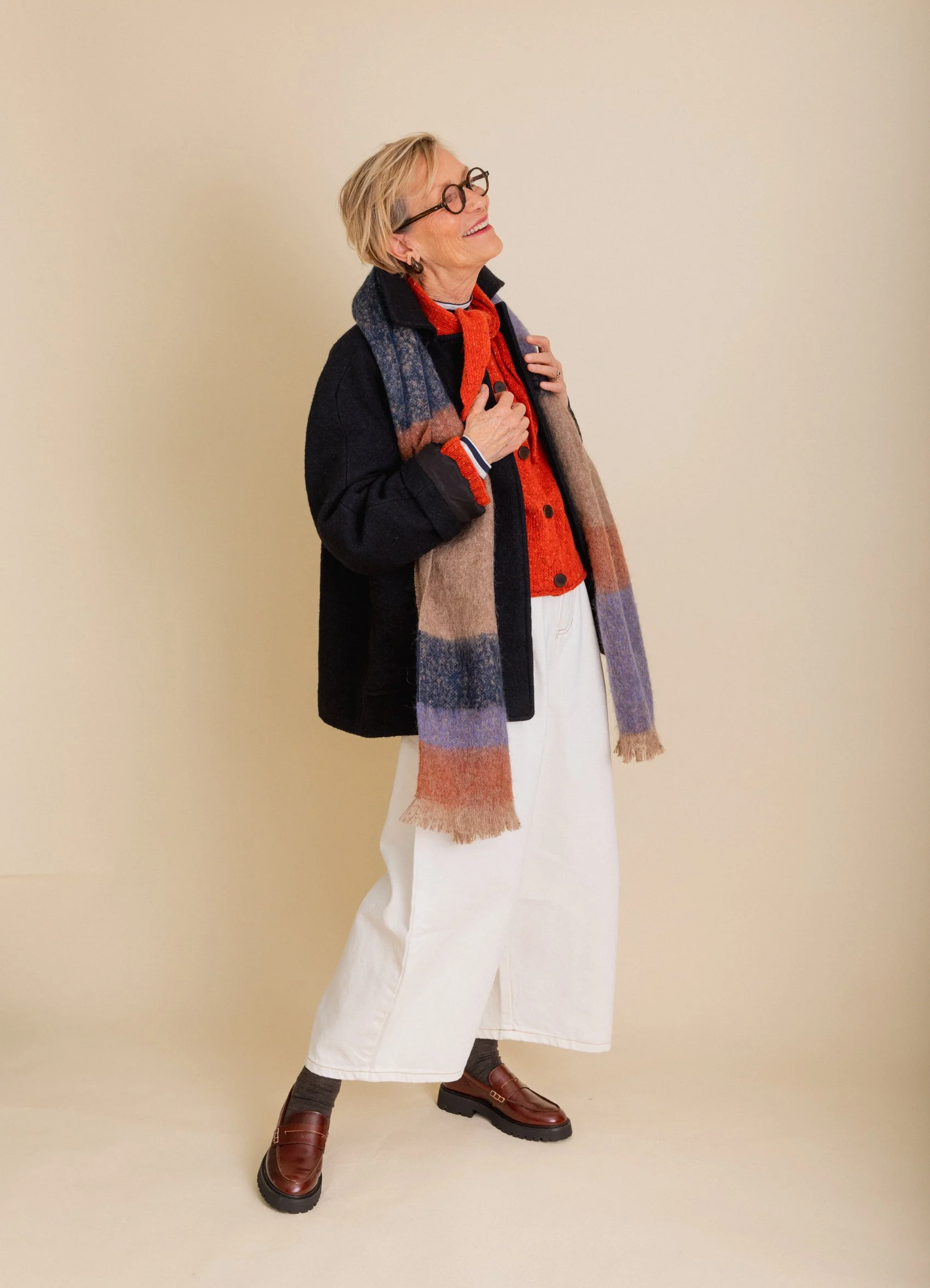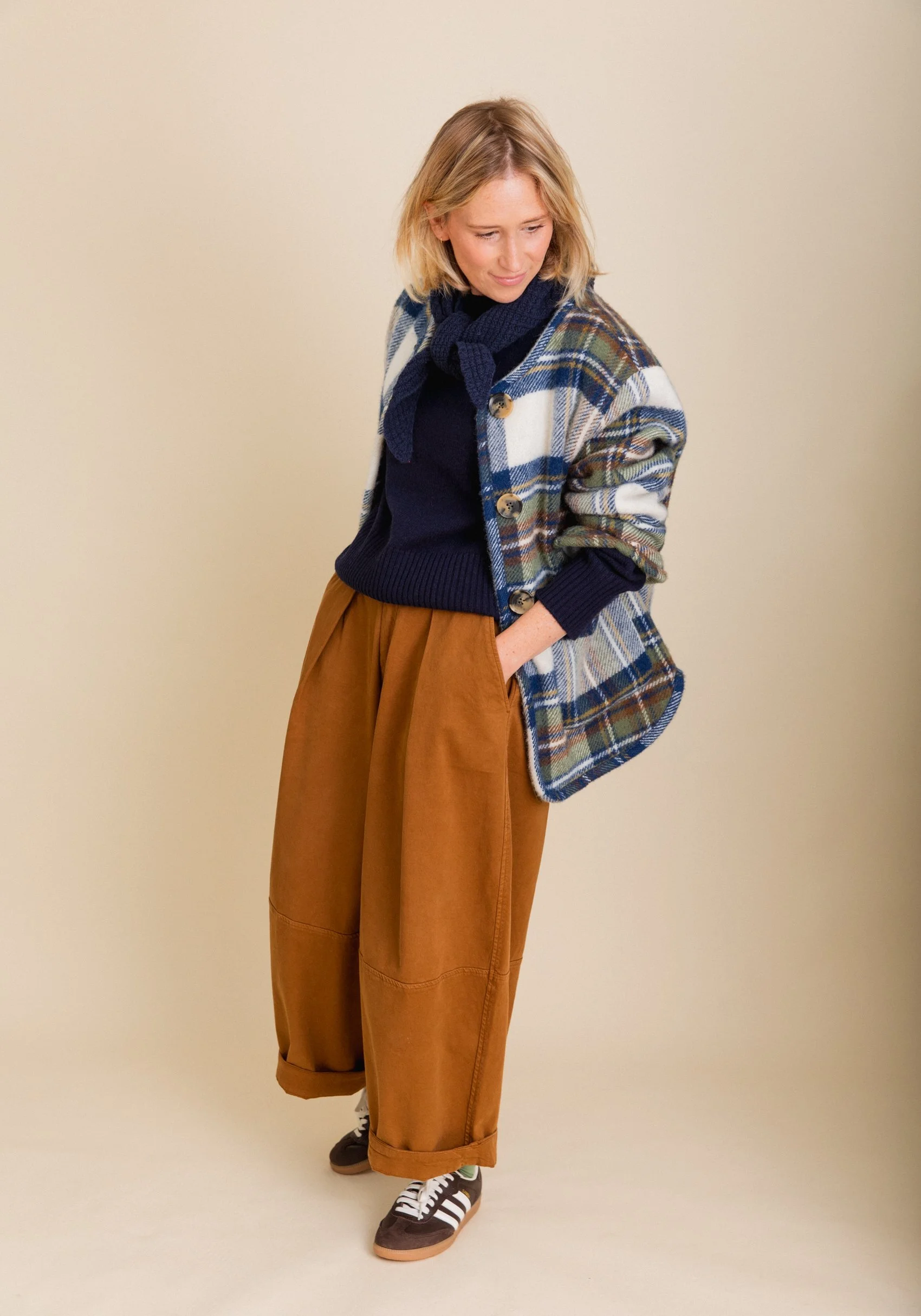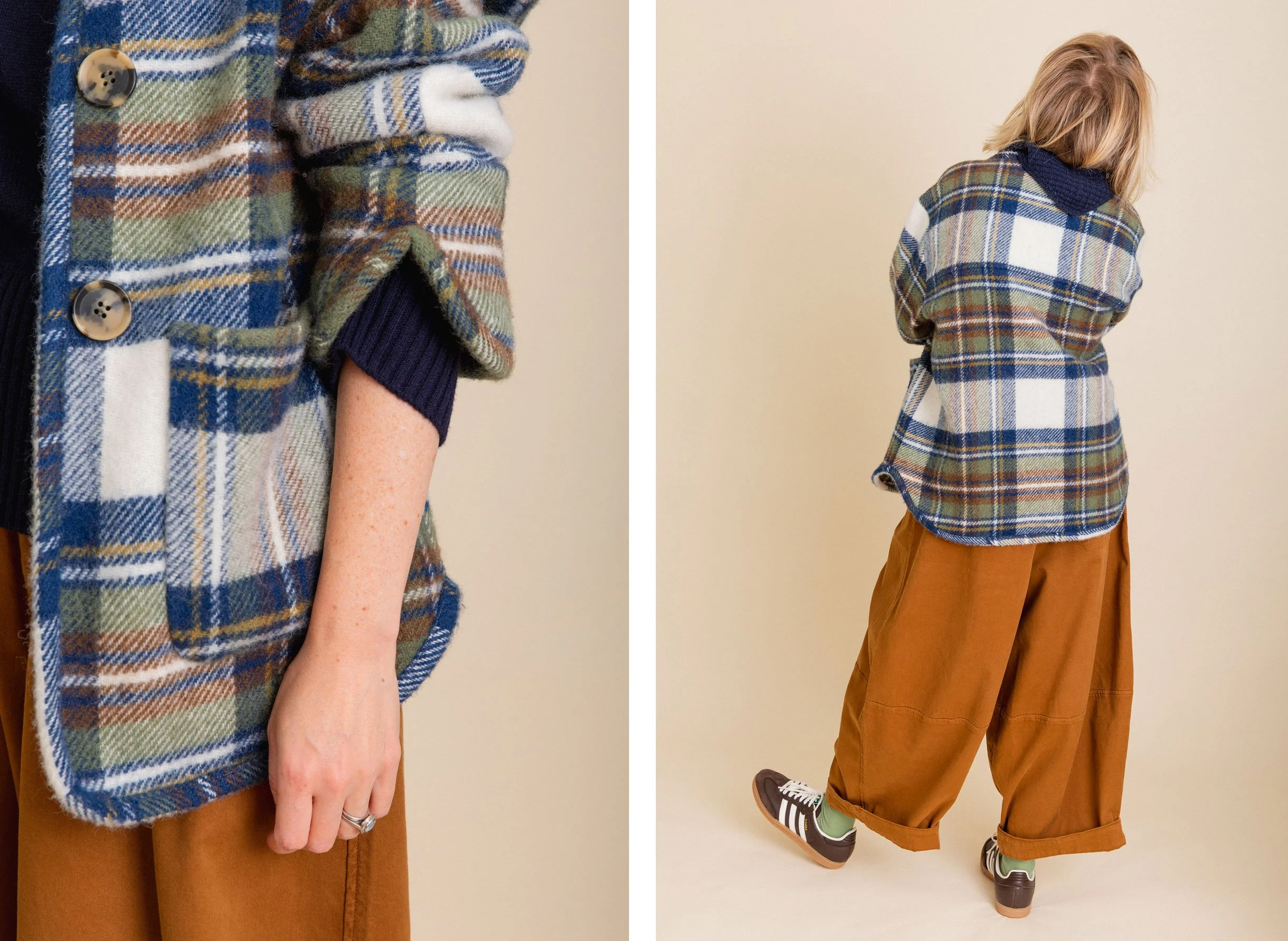This tartan jacket is made from a blanket. Not only do I love this particular tartan but it’s also very warm - much like the warmth of a picnic blanket over your shoulders. The jacket has been lovingly designed with beautiful over-sized buttons, interesting sleeve details and deep front pockets. I love that it looks like an overshirt but performs as a warm jacket. The tartan encompasses all the colours that I wear most frequently in winter. It is worth thinking about this when you invest in a winter jacket/coat. The outerwear is going to be much more useful to you and easy to wear if the colours are versatile and compliment your personal colour palette.