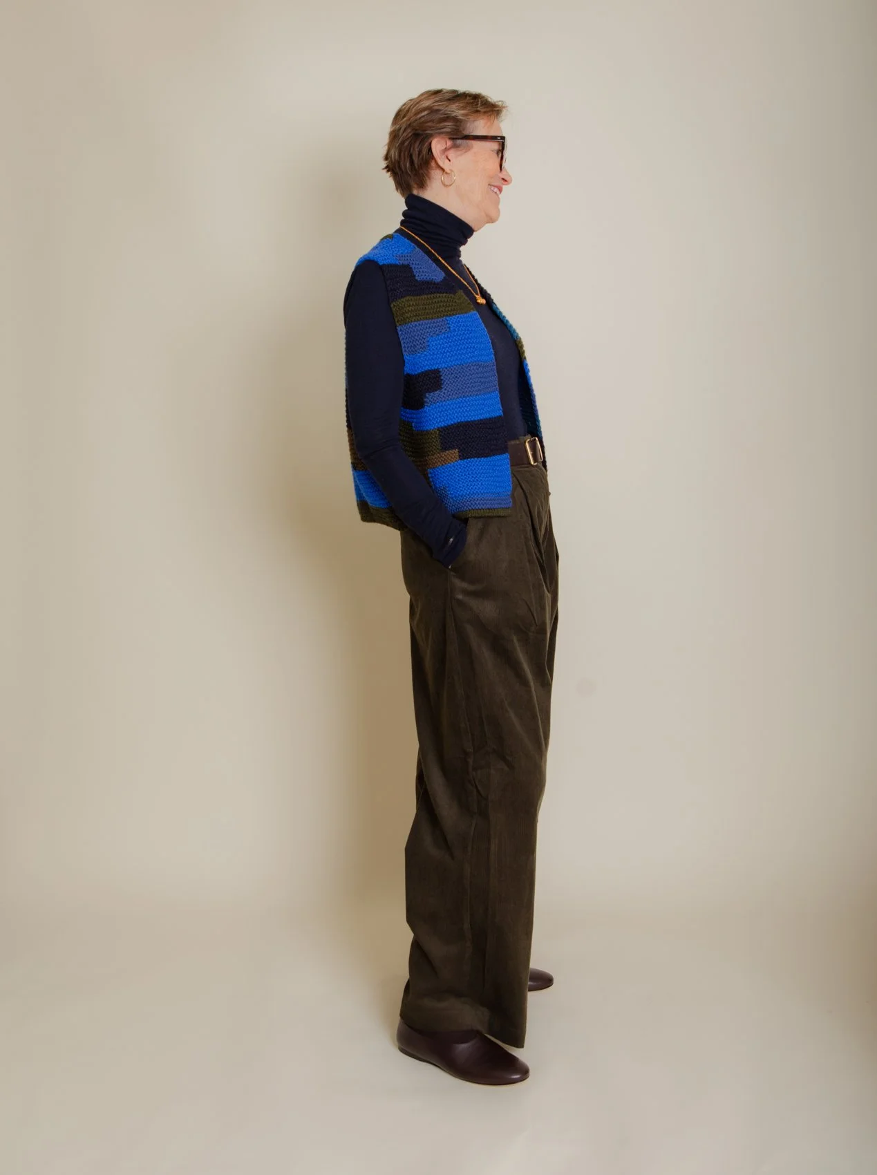 N.B. Mum is a UK10 and is wearing a 10 in these corduroy trousers but it turns out that the 8 would have fitted her better I think. It depends a bit on how you like your fit.