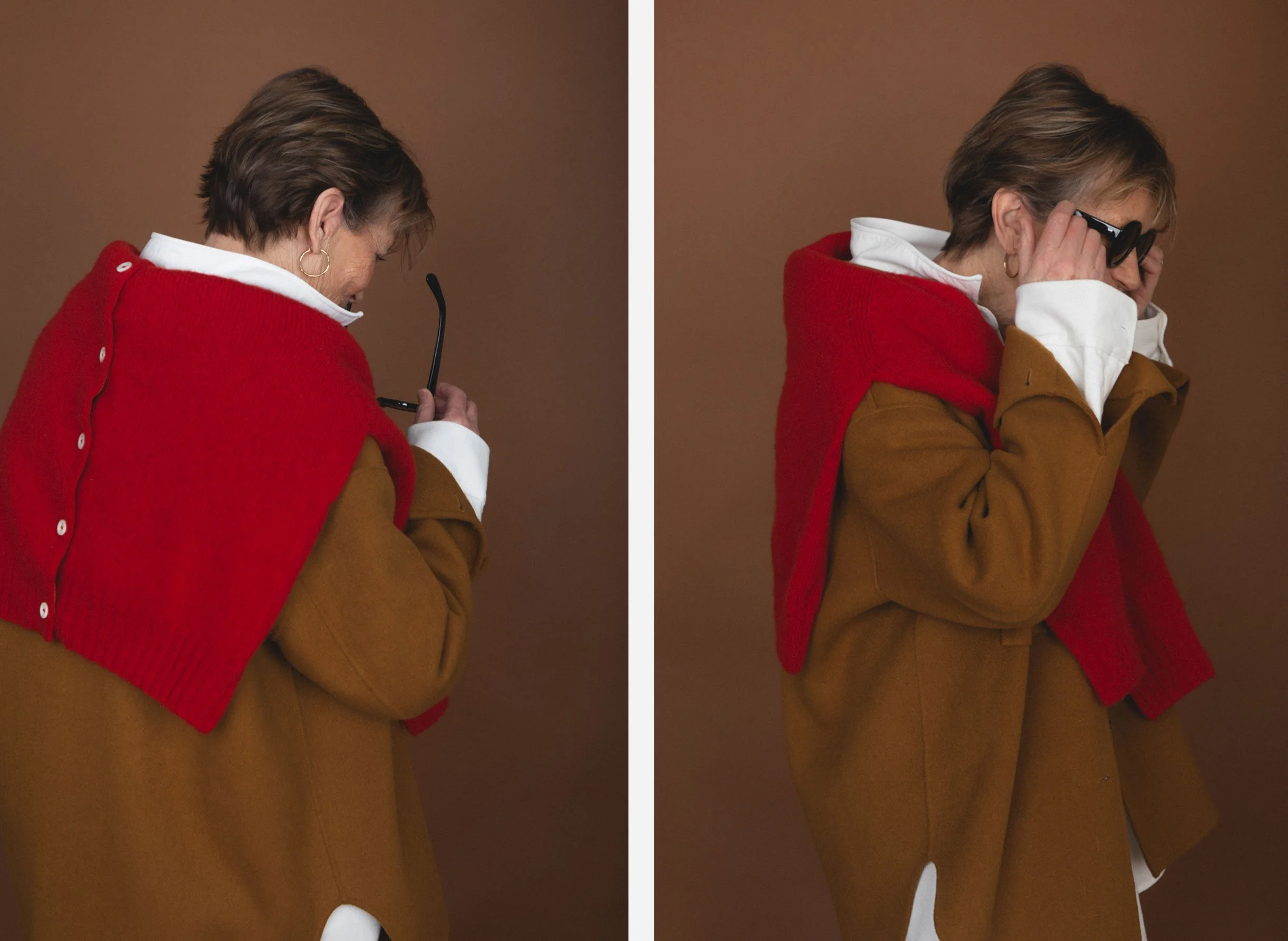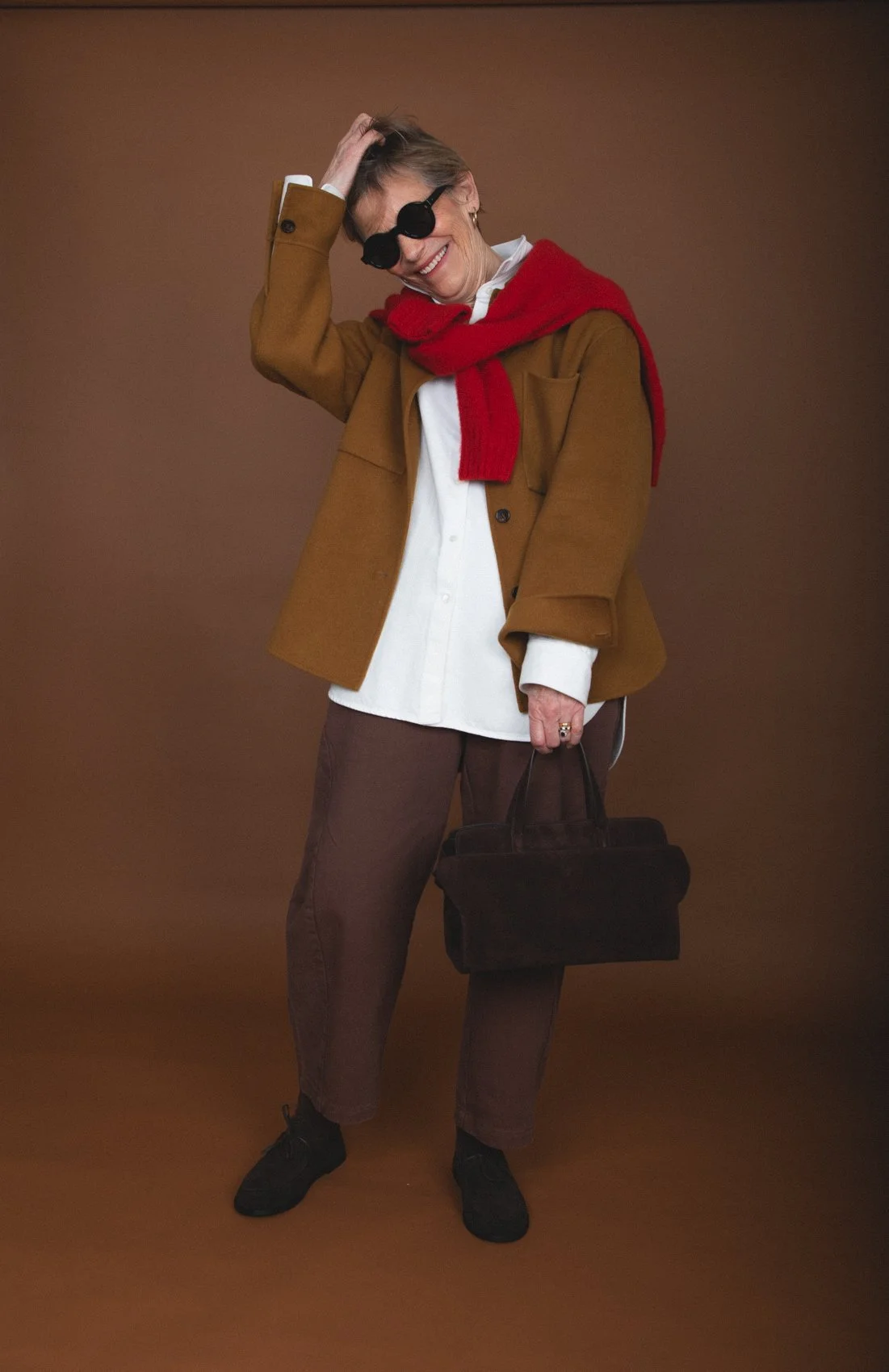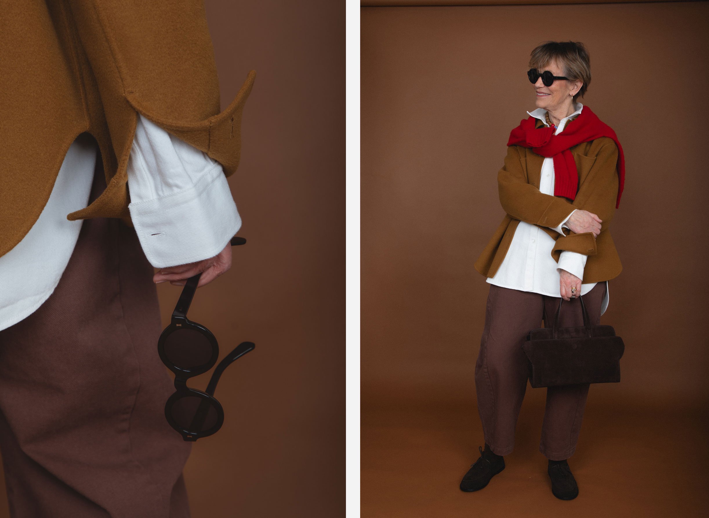 I’m sorry that this jacket that mum is wearing is not available to buy. As a general rule I like to feature pieces that are available but this time, the jacket worked so well I couldn’t resist using it! It’s made from a double-faced wool and I have had it for a couple of years now. The colour and shape seem to go with everything so if you ever see anything similar, I would recommend investing! I have had a look myself but I can’t find anything comparable at the moment but promise to keep my eyes peeled….! And of course, maybe you already have something suitable in your wardrobe….