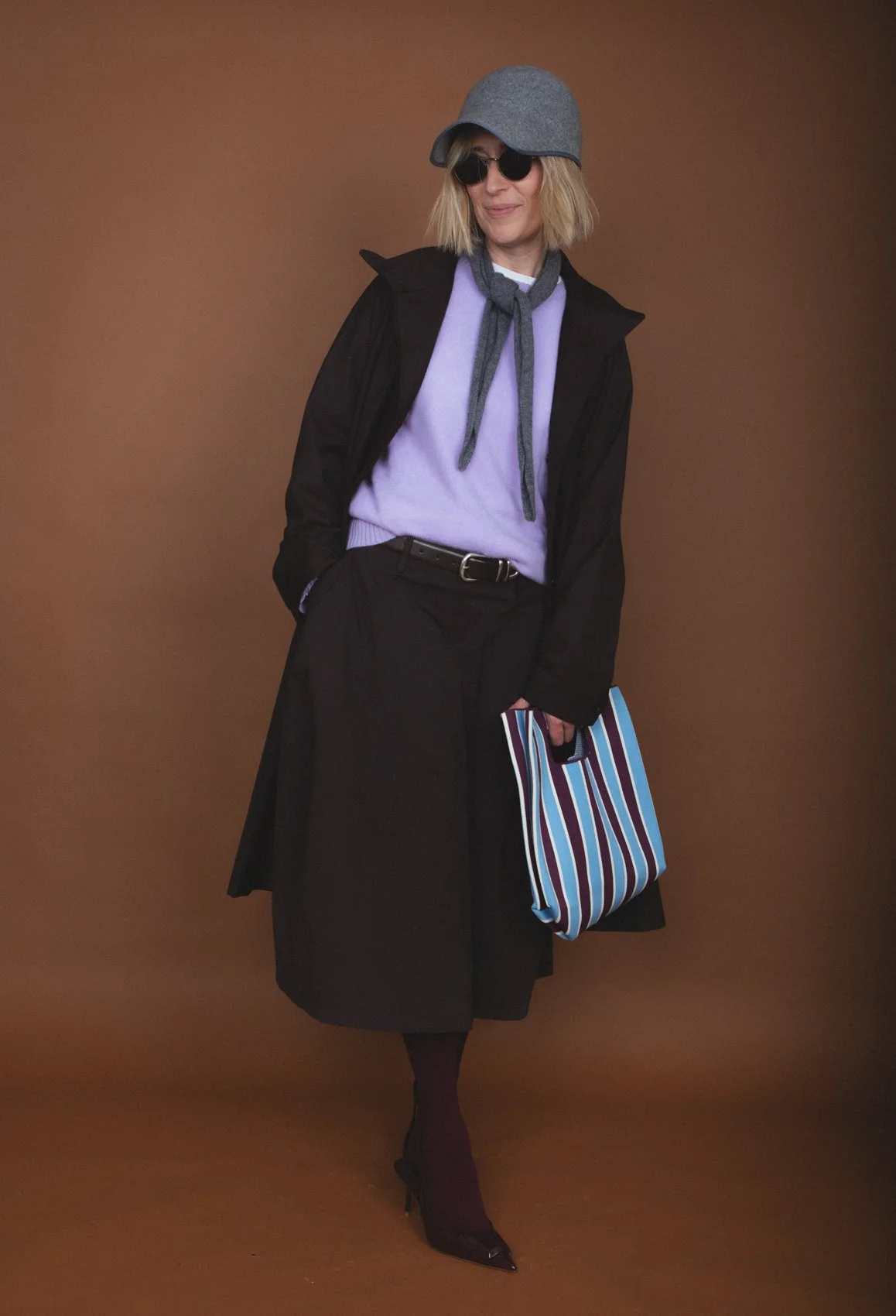 I’m really enjoying wearing a skirt at the moment. When you’re someone who usually wears trousers, it can be tricky to find skirts with the right aesthetic vibe. They’re often too frilly, floral or flouncy! For me, the answer is finding one that slots into my wardrobe as a direct alternative to trousers. The one that I am wearing here is a perfect example. The jumper, belt, coat and shoes combo would work just as well with a pair of tailored trousers as it does with this skirt.